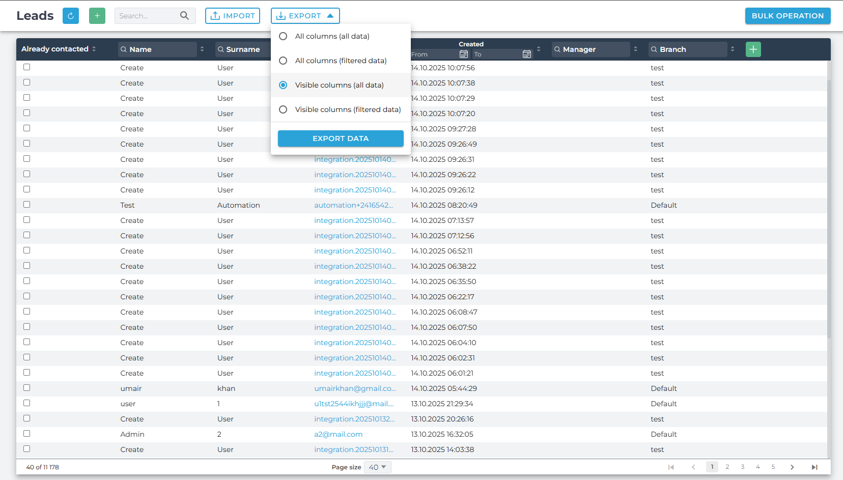 All implemented improvements allow CRM users to export precisely the data they need for reporting and analysis, whether they require comprehensive datasets or only the information currently visible on their screens. The changes also ensure that essential system columns are always included in exports, even if they are hidden in the table view. Also, thanks to the updates, critical system columns are automatically included in all exports, even when hidden from the current table view.