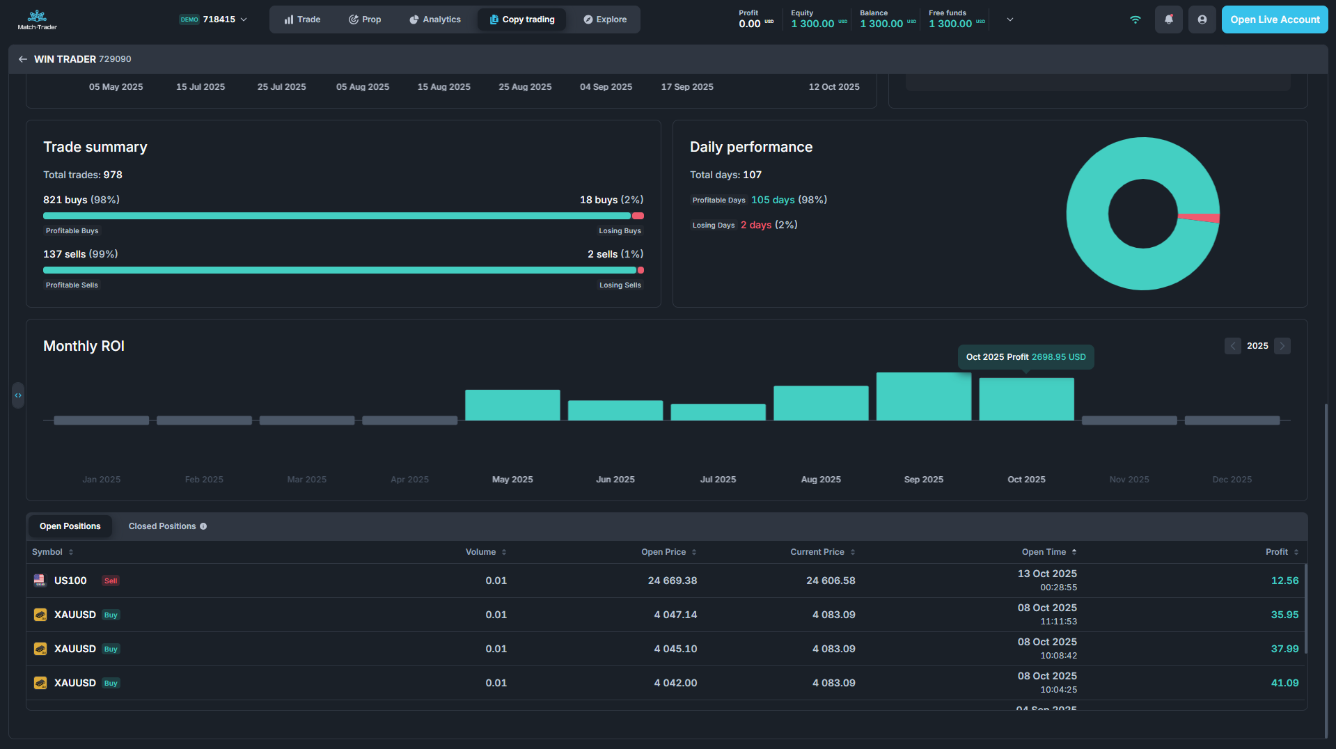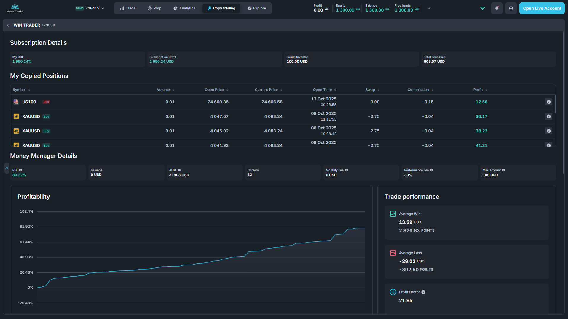 A new Copy Trading module has been launched within the Match-Trader platform, delivering a modernized and fully optimized user interface as part of the Social Trading suite. The new UI preserves all functionalities from the previous version while introducing a refreshed design and improved usability. To ensure a smooth transition for users, the interface has been thoroughly tested for compatibility across various screen resolutions, browsers, and mobile devices. This comprehensive testing, along with the implementation of all essential features, guarantees a production-ready Copy Trading experience for all platform users.