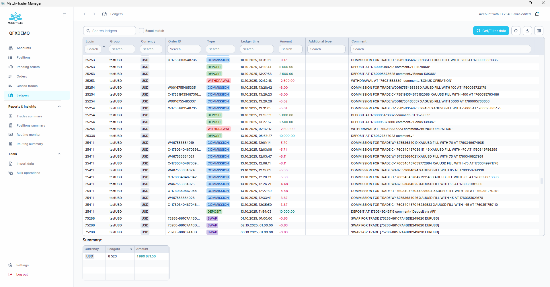 The manual withdrawal endpoint now supports withdrawals from demo accounts. Both CRM and Broker API users can initiate and process demo withdrawals using the same controls as live flows. All transactions are recorded in the CRM and broker systems, ensuring end-to-end visibility.