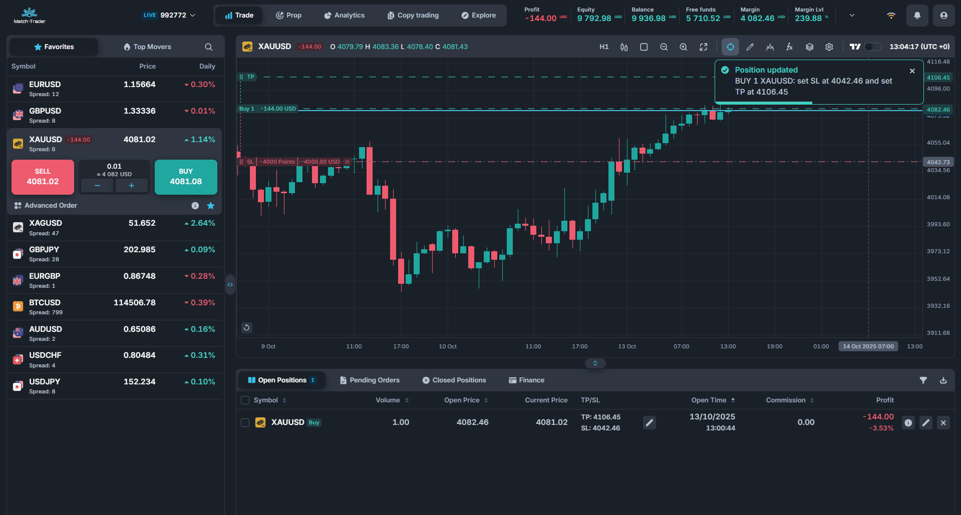 Toast notifications for trading events deliver comprehensive price information directly to traders, offering instant, detailed feedback on opening, closing, or updating positions and pending orders. Updated notification titles and messages ensure clear, consistent communication across both desktop and mobile platforms.